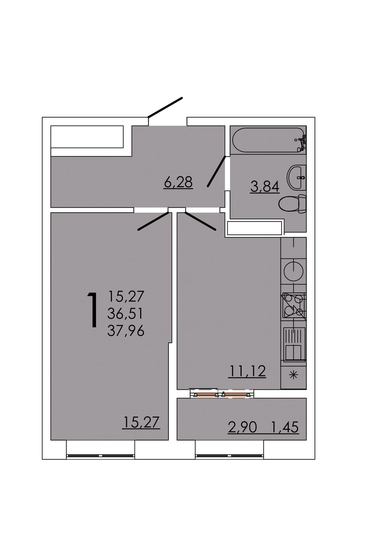| 1-комн. | 34 - 39 м² | 6,3 - 7,2 млн ₽ |