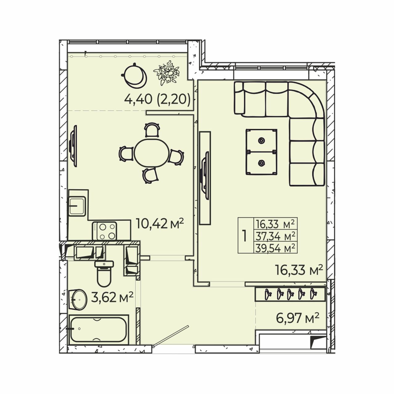 1-комнатная — 39,8 м² 2/23 эт. в На Школьной