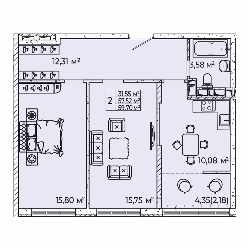 Общая площадь59,7 м²