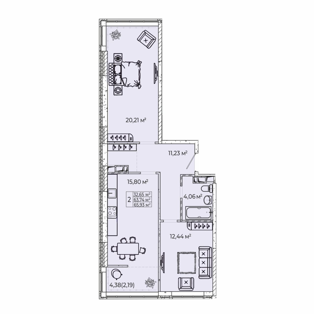 2-комнатная — 66 м² 2/23 эт. в На Школьной