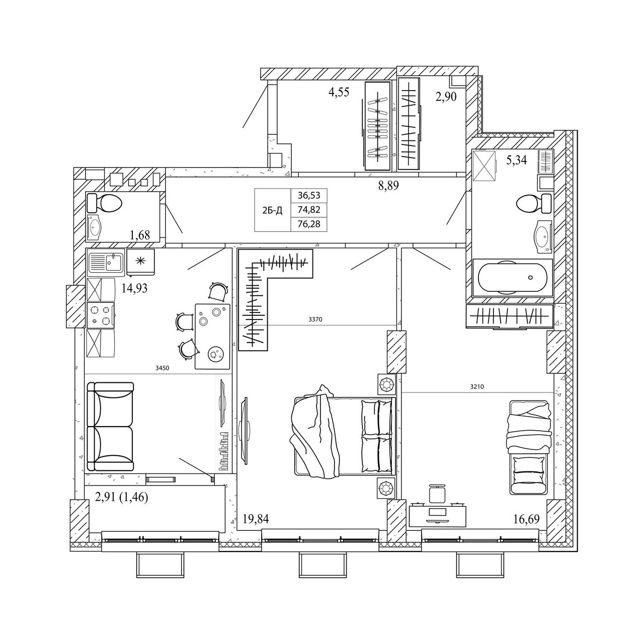 2-комнатная — 76,28 м² 1/12 эт. в Орион
