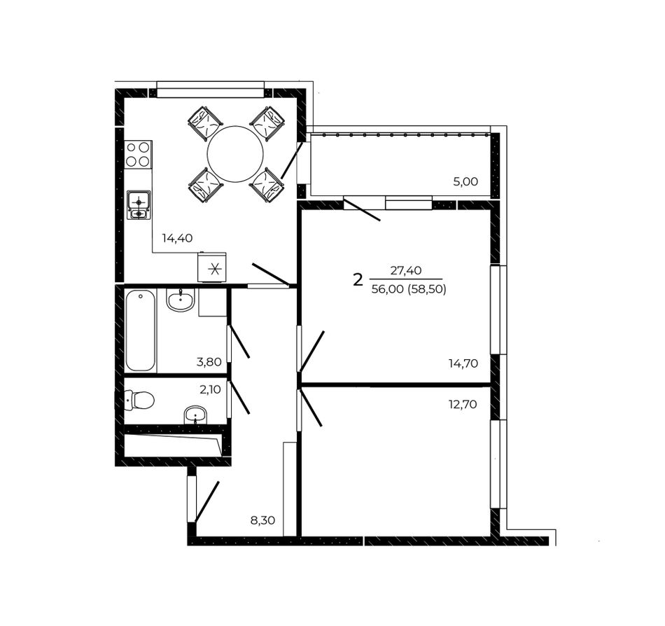 Общая площадь58,5 м²