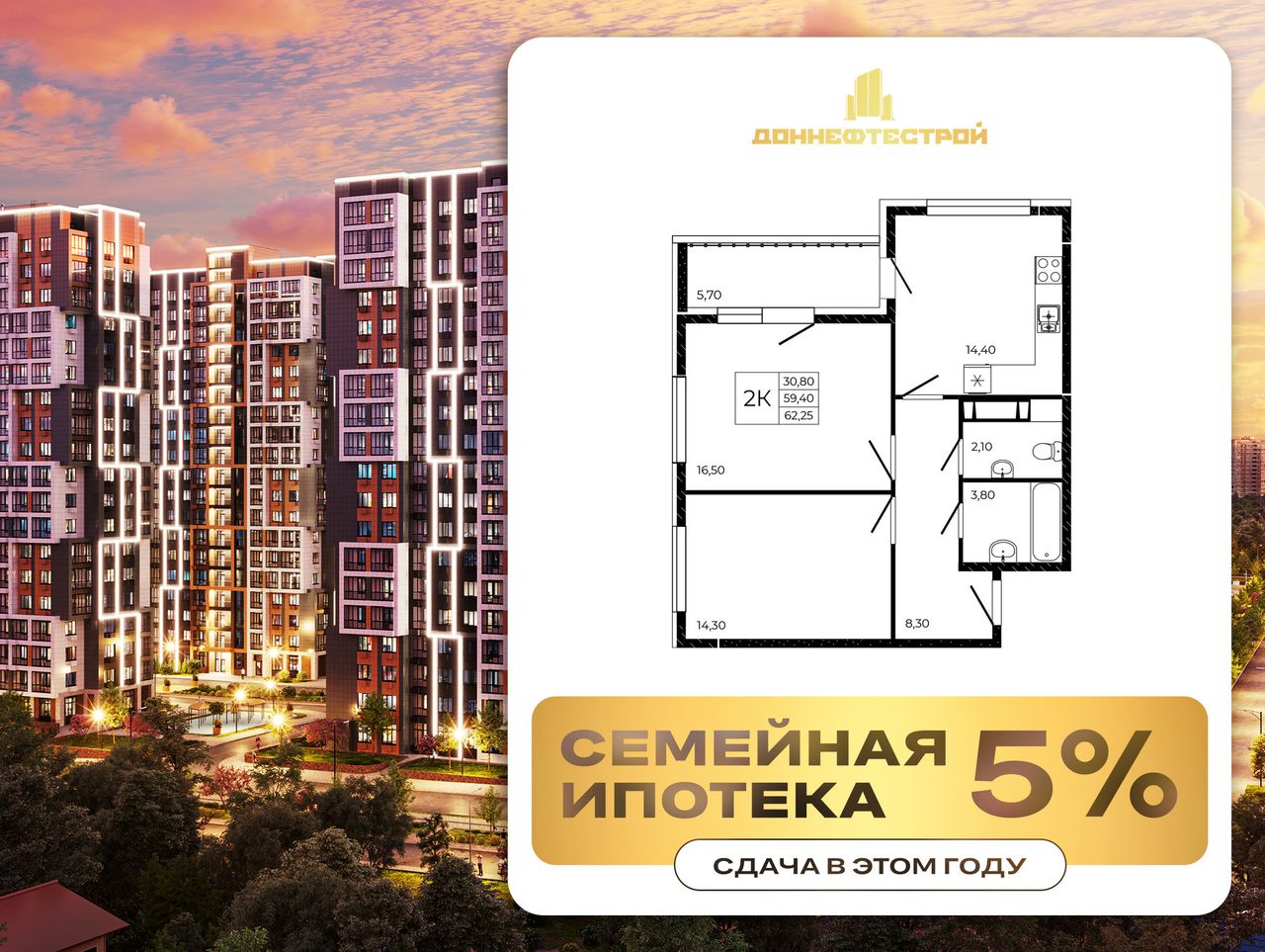 2-комнатная — 62,25 м² 17/19 эт. в Притяжение