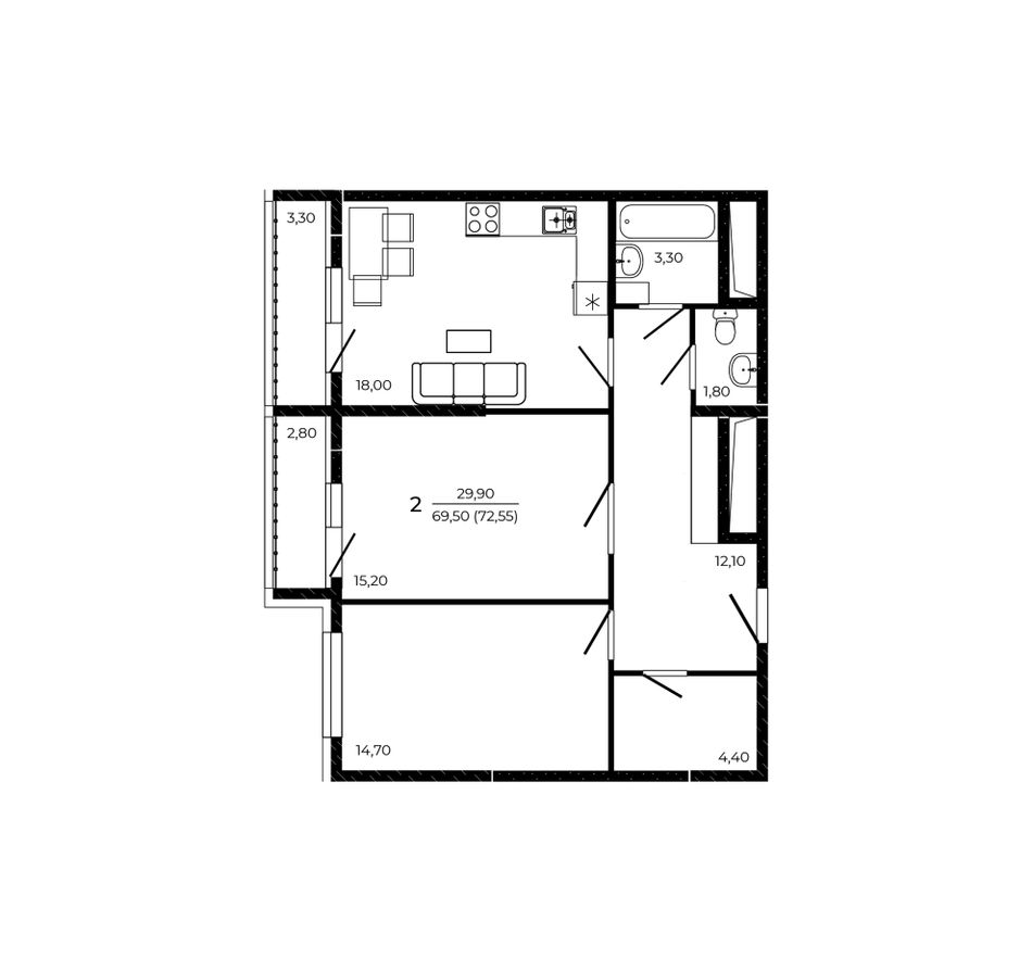 Общая площадь72,55 м²