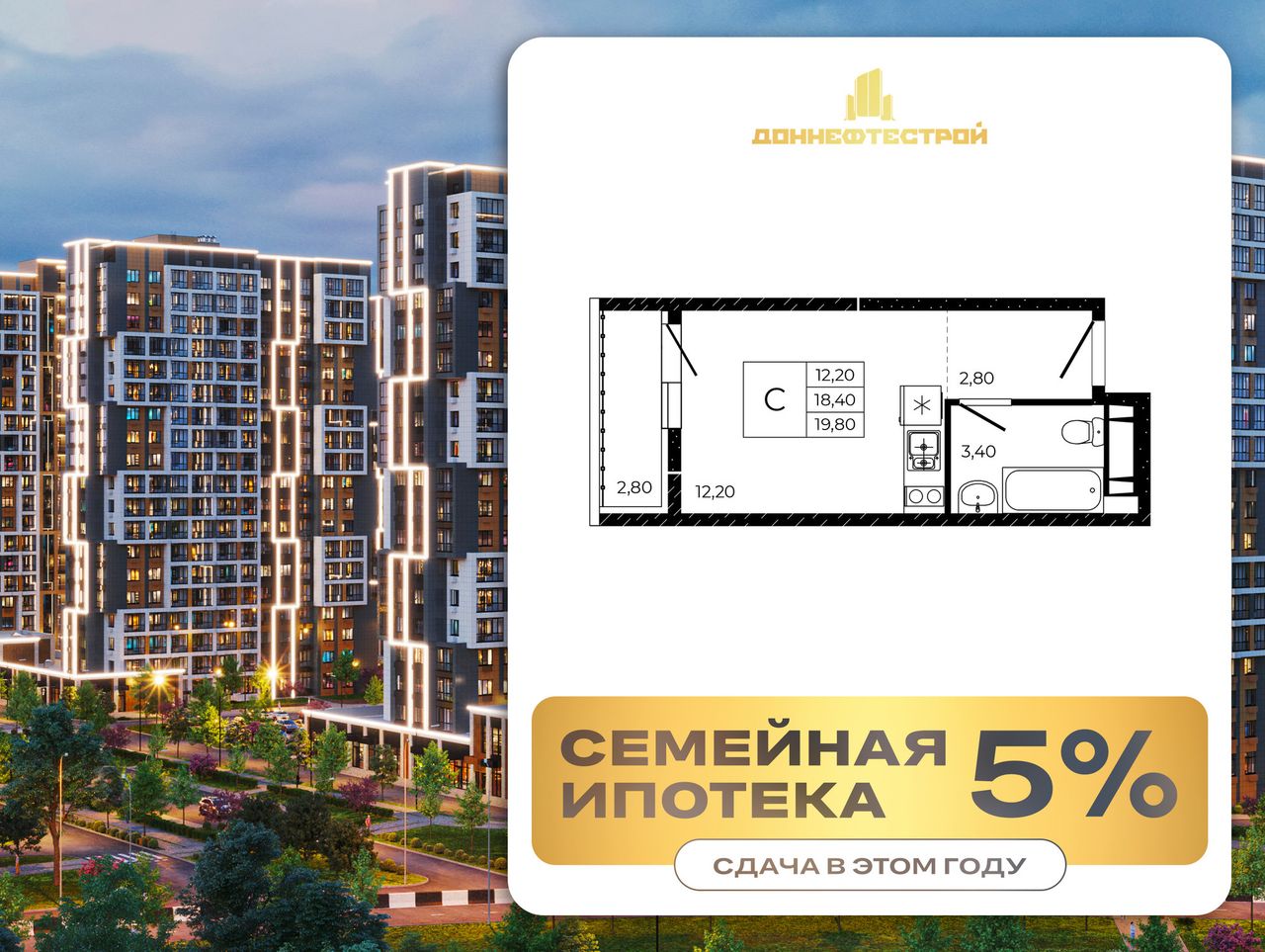 Студия — 19,8 м² 4/19 эт. в Притяжение