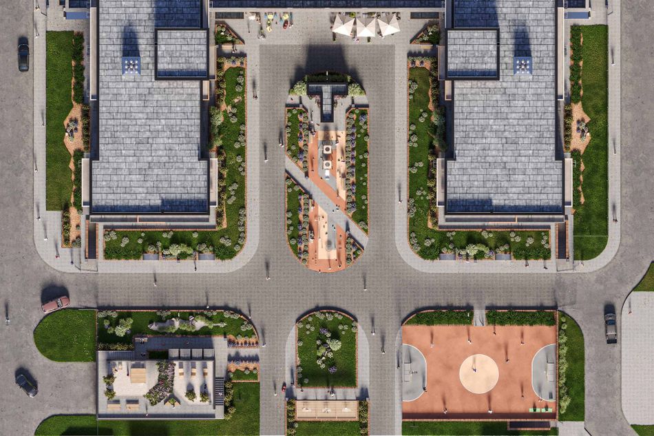 Проект многоэтажной застройки бизнес-класса в центре города со своим детским садом, подземным паркингом и полной внутренней инфраструктурой.