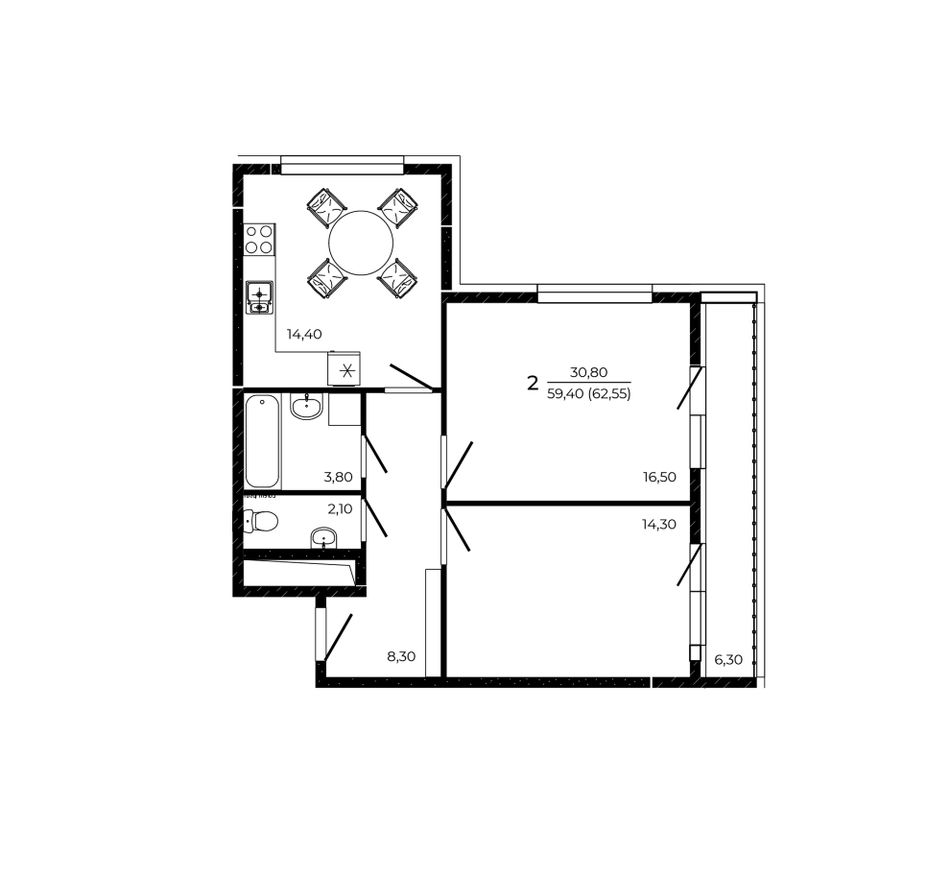 2-комнатная — 62,55 м² 10/19 эт. в Притяжение