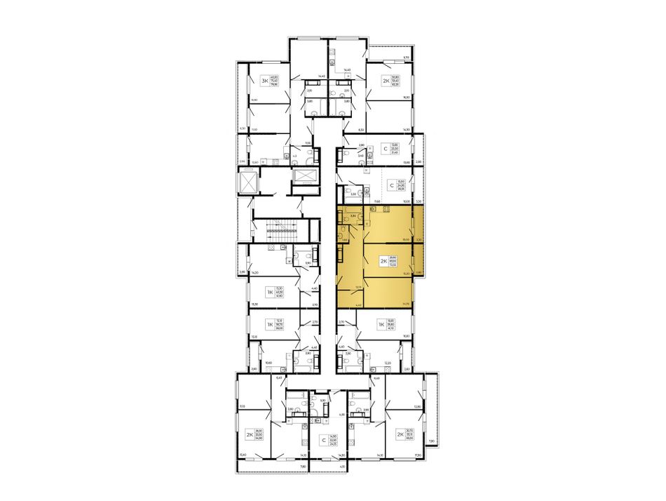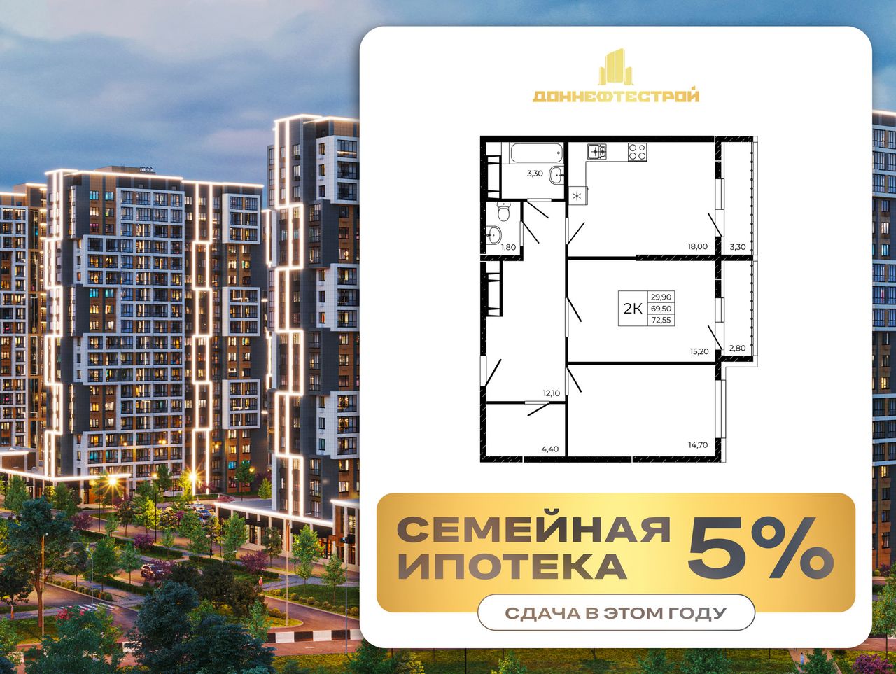 2-комнатная — 72,55 м² 13/19 эт. в Притяжение