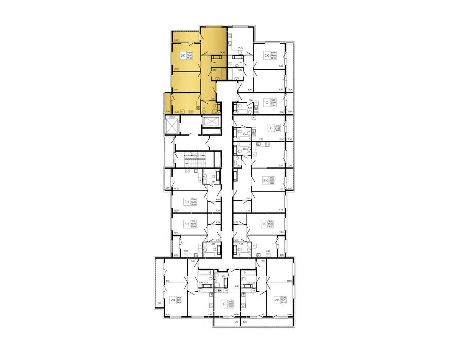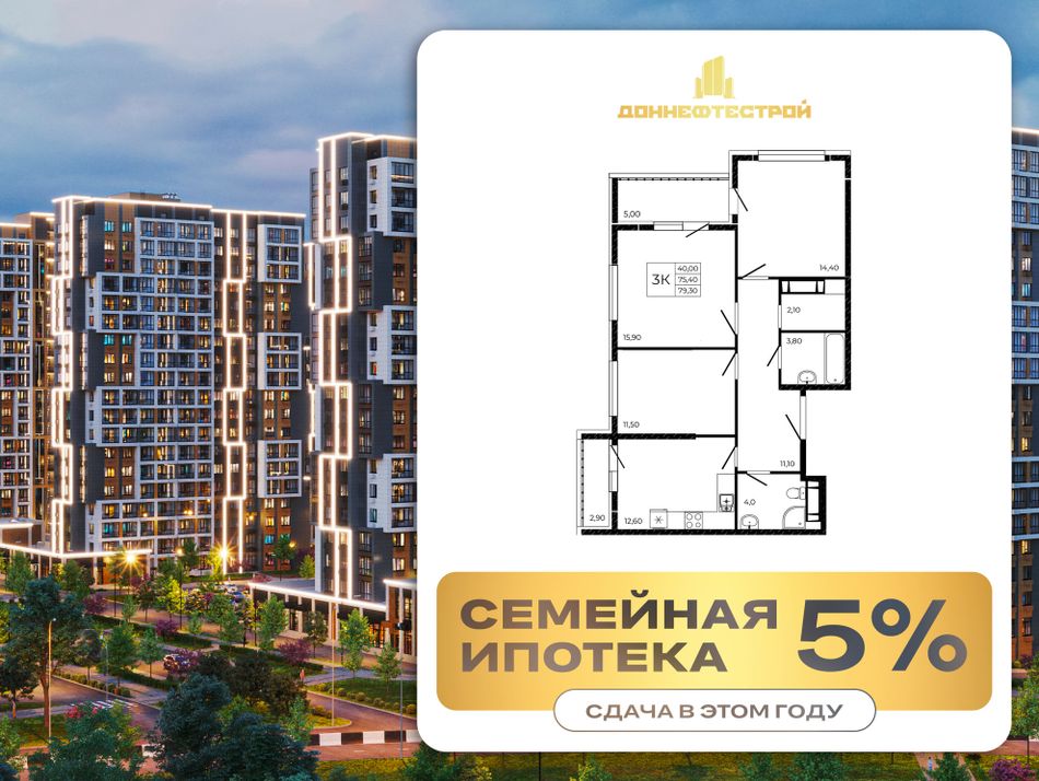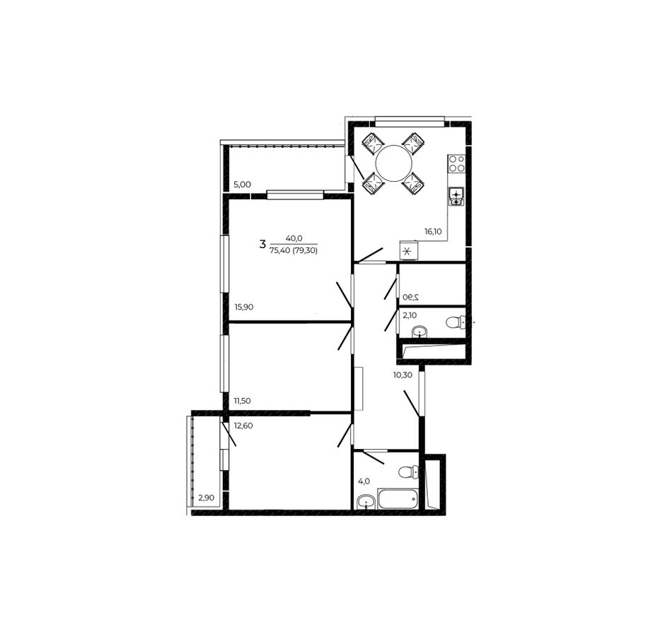 3-комнатная — 79,3 м² 14/19 эт. в Притяжение