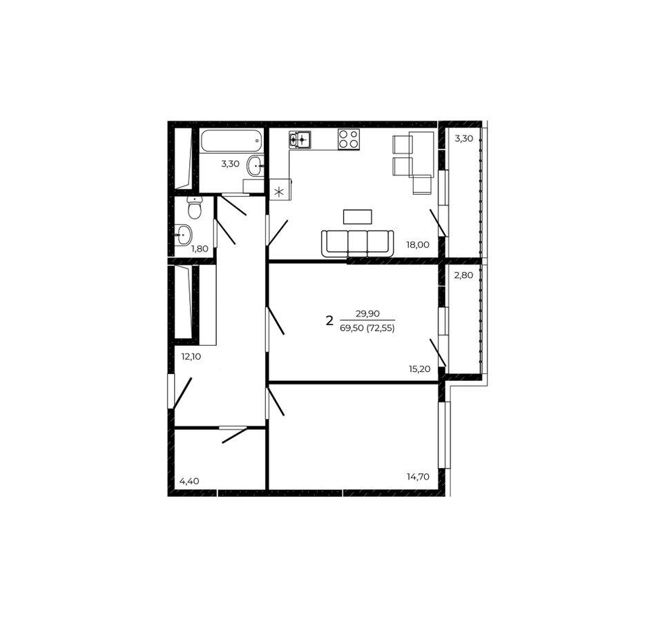 Общая площадь72,55 м²