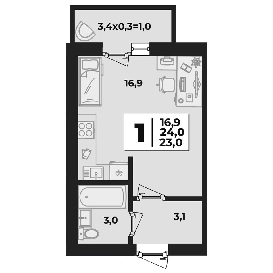 1-комнатная — 24 м² 2/5 эт. в Дарград