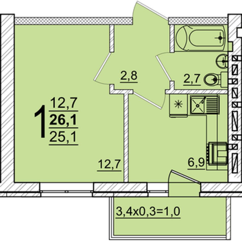 1-комнатная — 26,1 м² 5/5 эт. в Дарград