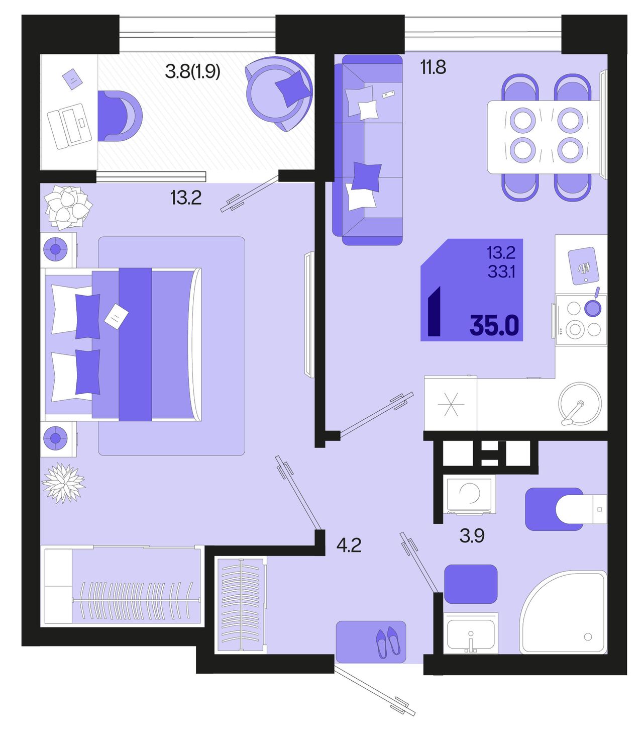 Общая площадь35 м²