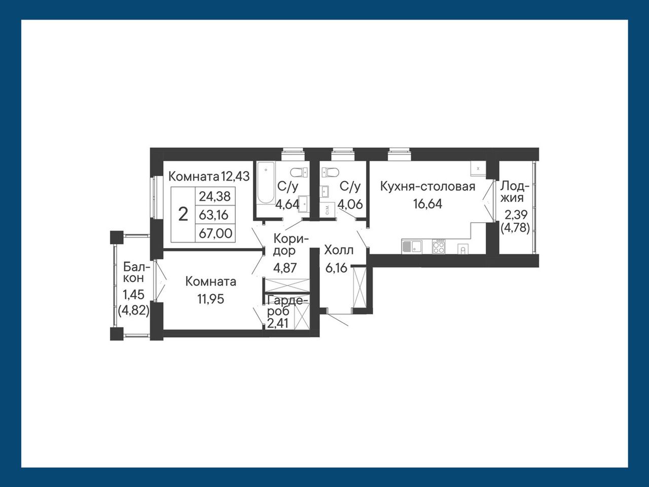 | 2-комн. | 64 - 78 м² | 8,4 - 9,2 млн ₽ |