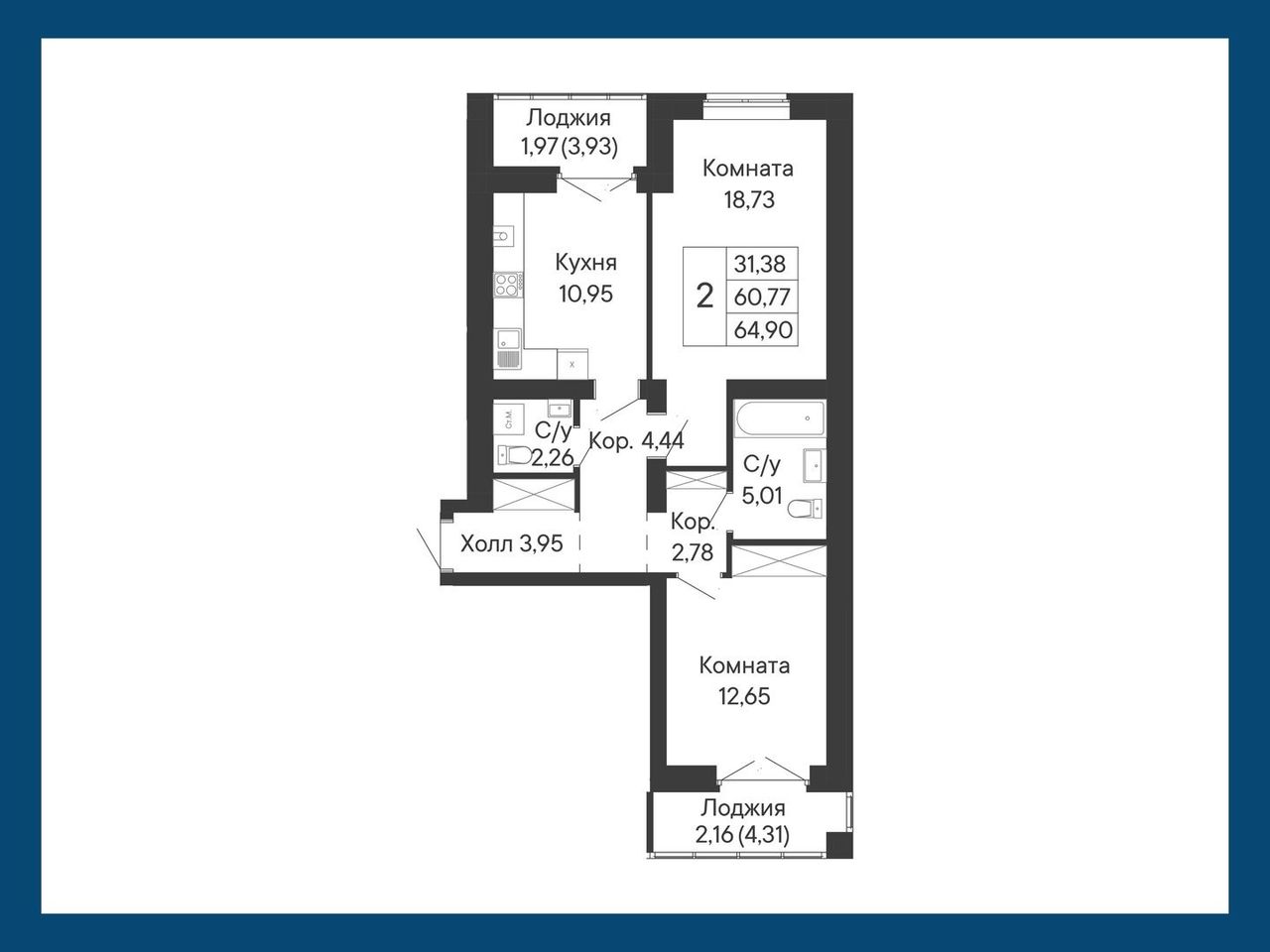 2-комнатная — 64,9 м² 5/8 эт. в Ривьера
