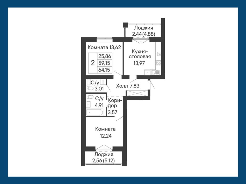 2-комнатная — 64,15 м² 4/8 эт. в Ривьера
