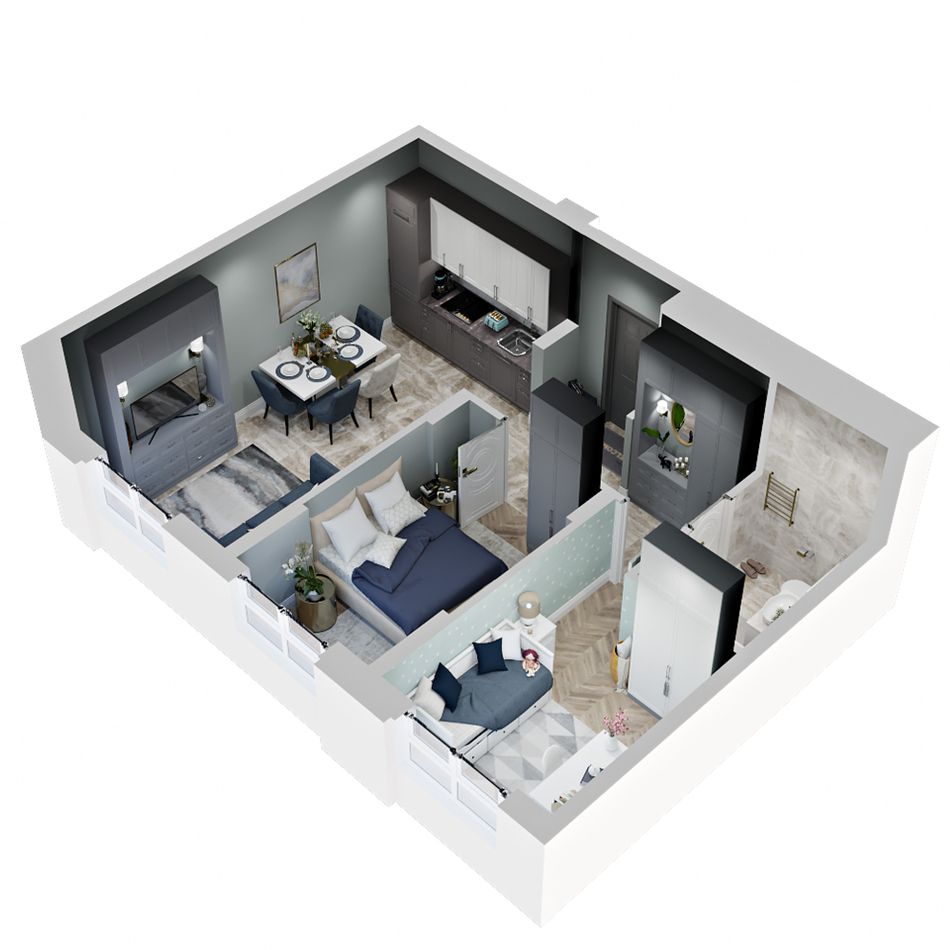 Стильные фасады, разработанные по индивидуальному проекту, большая торговая галерея, детский садик, школа, фитнес-клуб на территории ЖК. Удобные планировки квартир с панорамным остеклением.