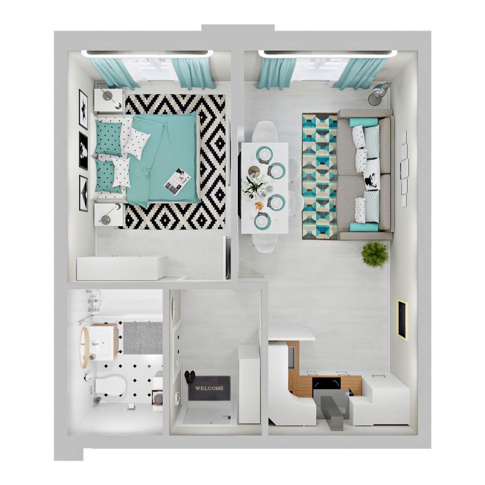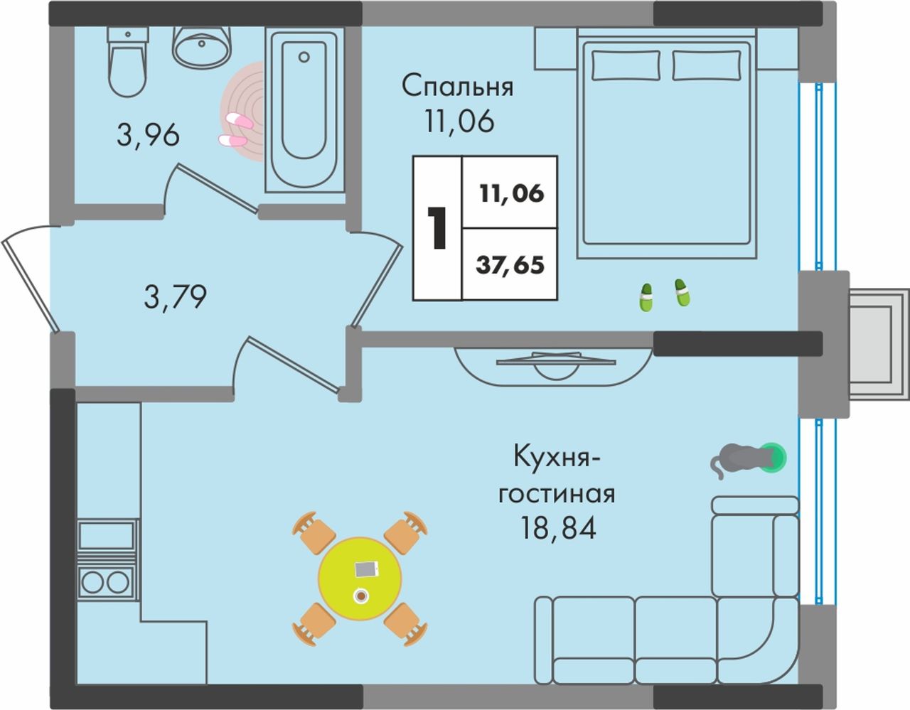 1-комнатная — 37,65 м² 2/9 эт. в Зелёная территория