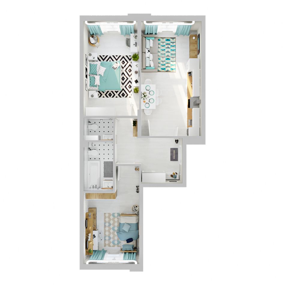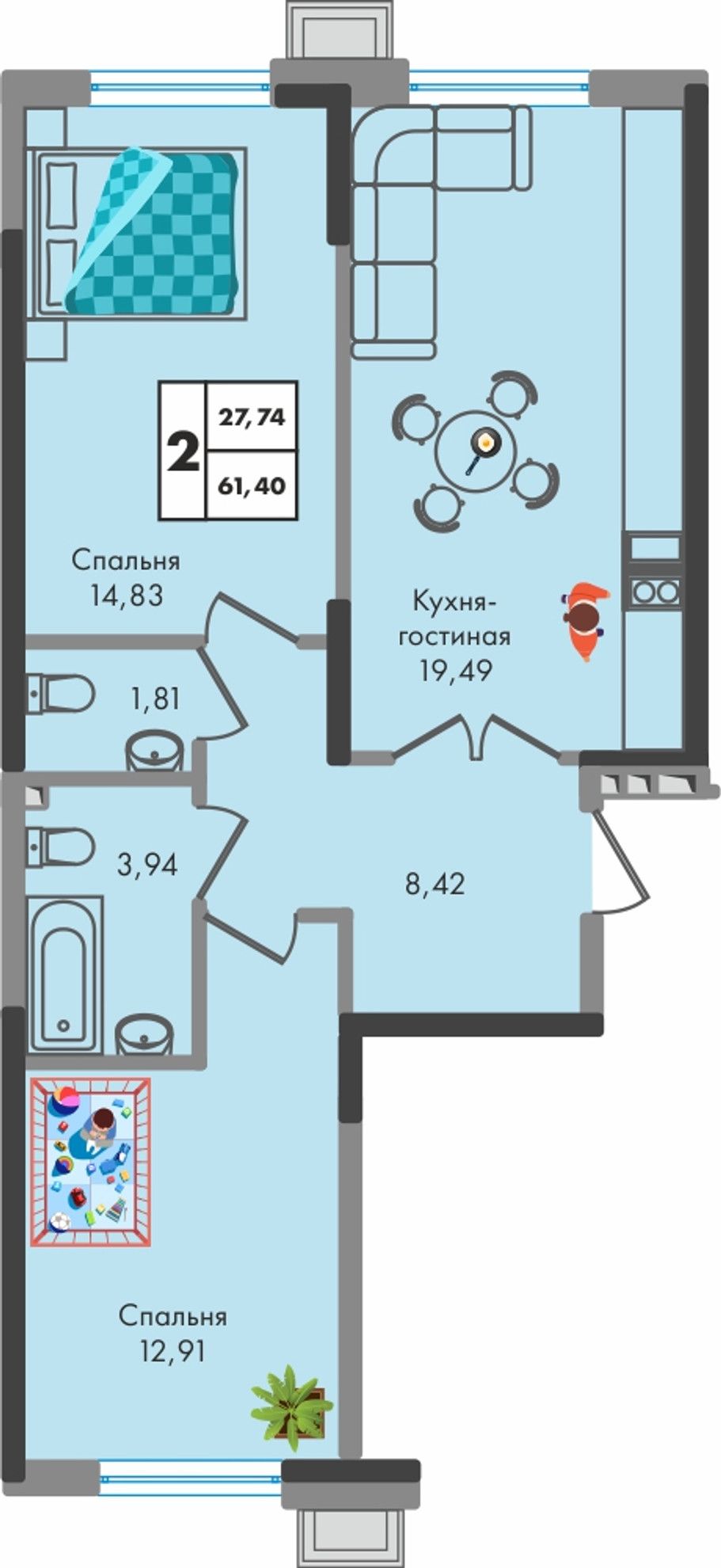 2-комнатная — 61,4 м² 3/9 эт. в Зелёная территория