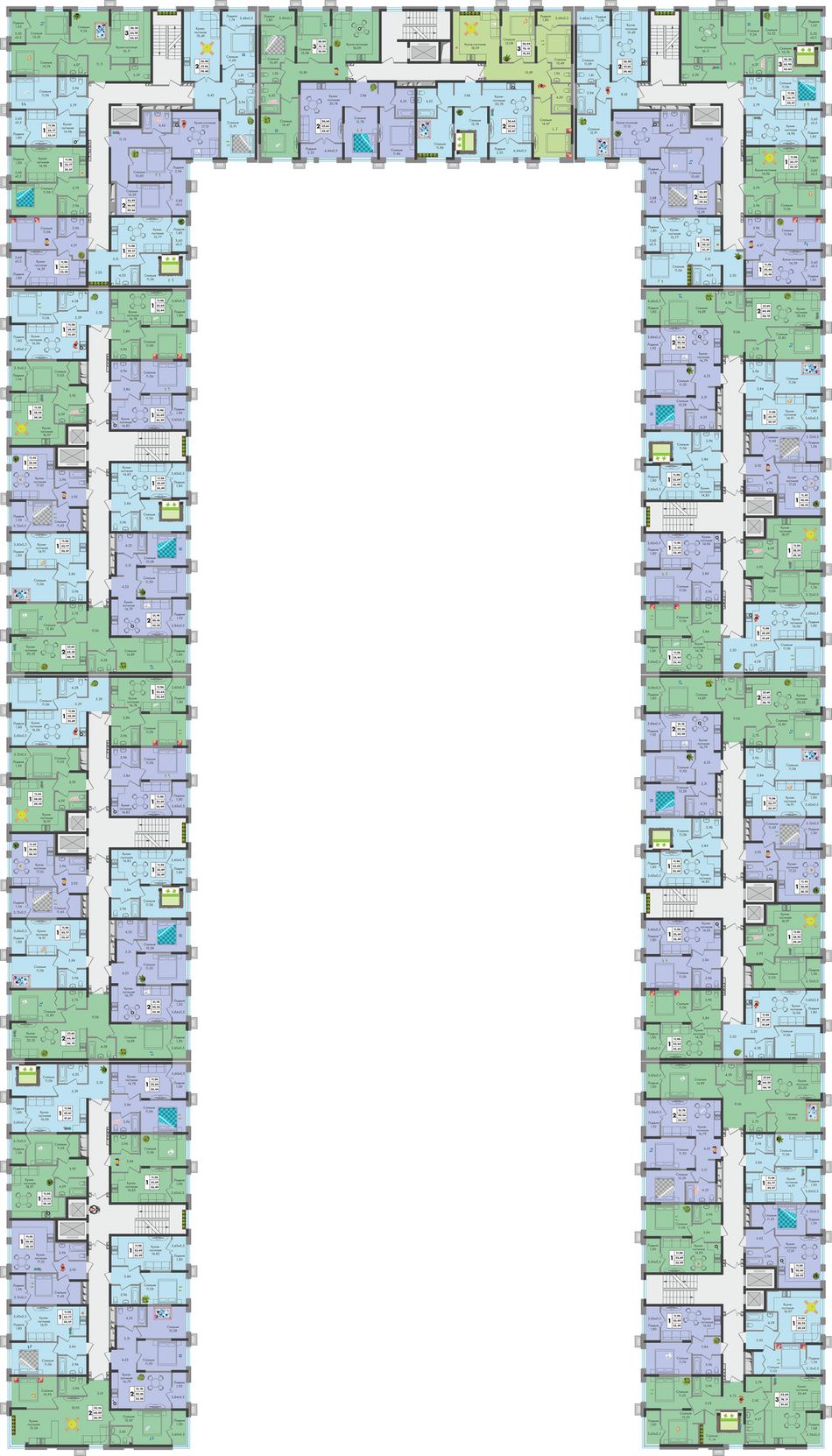 Стильные фасады, разработанные по индивидуальному проекту, большая торговая галерея, детский садик, школа, фитнес-клуб на территории ЖК. Удобные планировки квартир с панорамным остеклением.