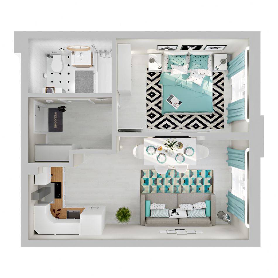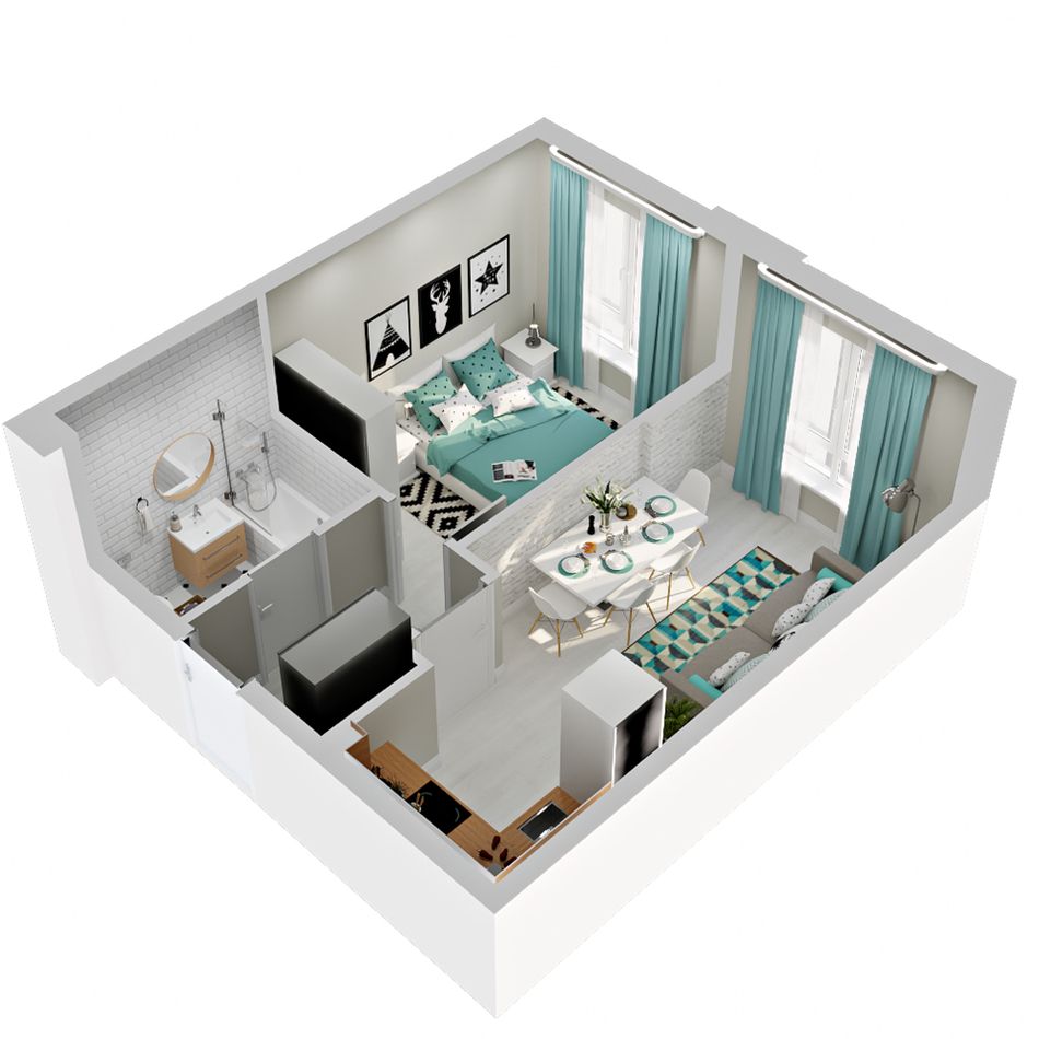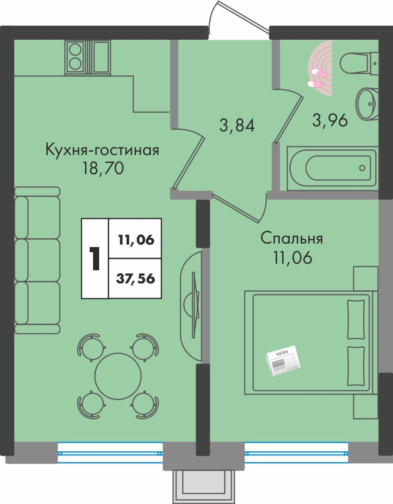 1-комнатная — 37,56 м² 4/9 эт. в Зелёная территория