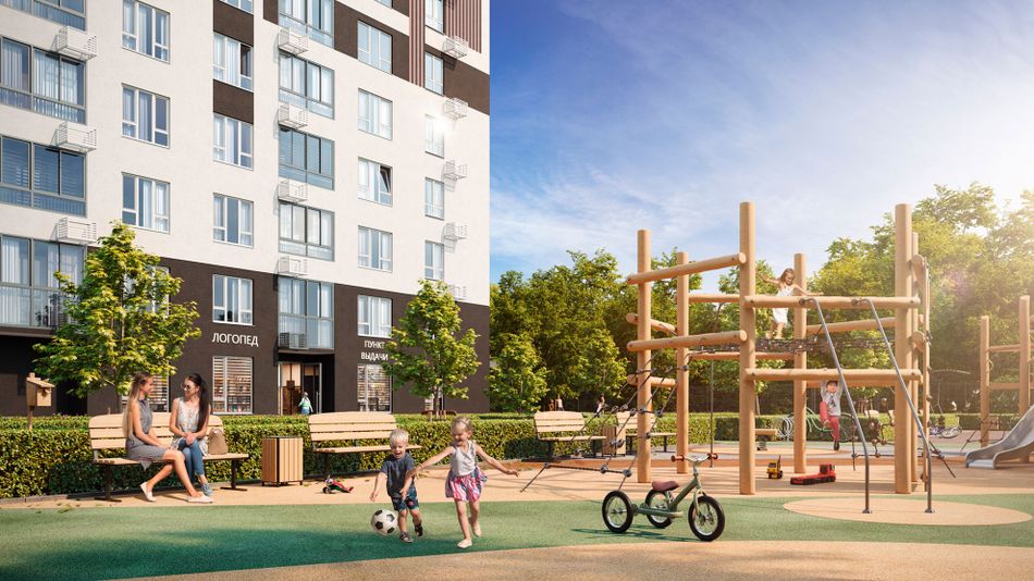Яркие, стильные фасады, два собственных детских сада и школа на территории ЖК.