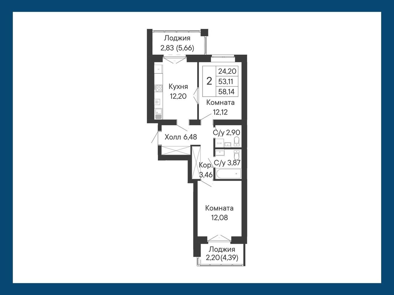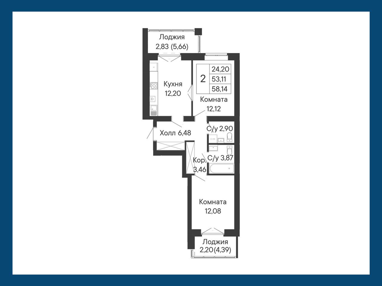 2-комнатная — 58,14 м² 5/8 эт. в Ривьера