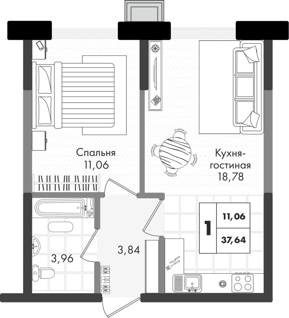 Общая площадь37,64 м²