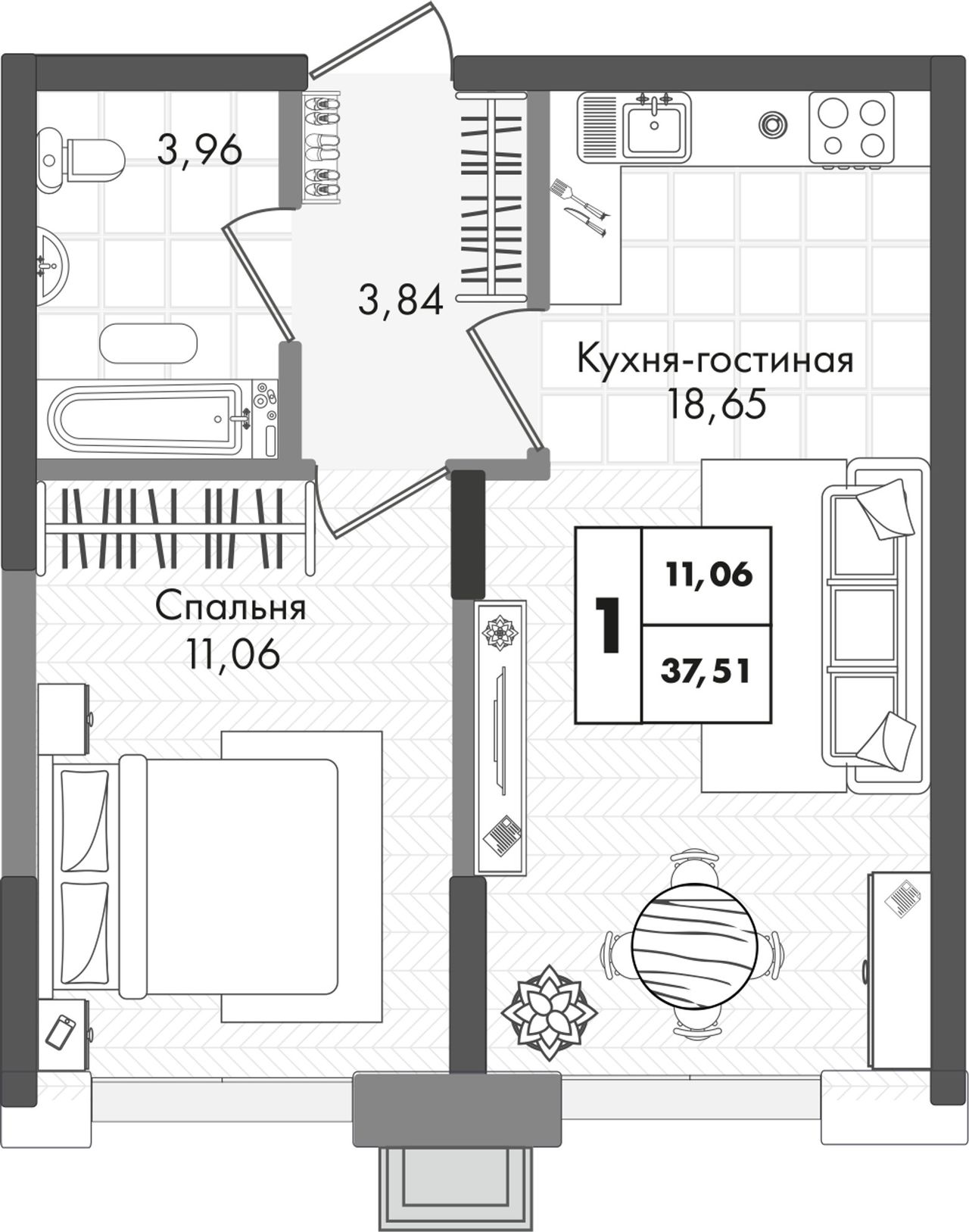 Общая площадь37,51 м²