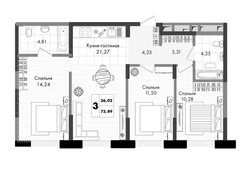 Общая площадь73,89 м²