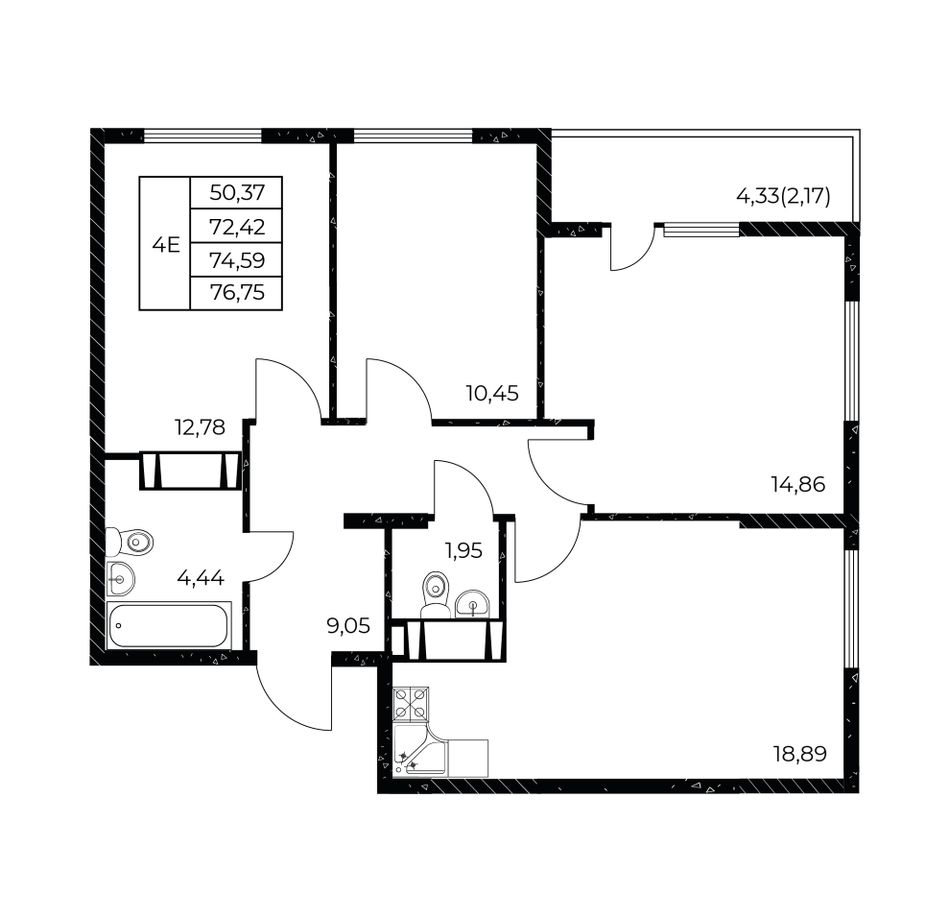 Общая площадь76,75 м²