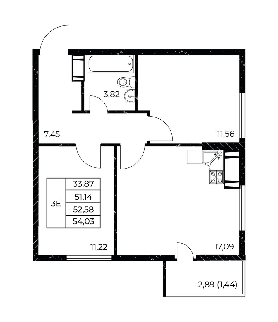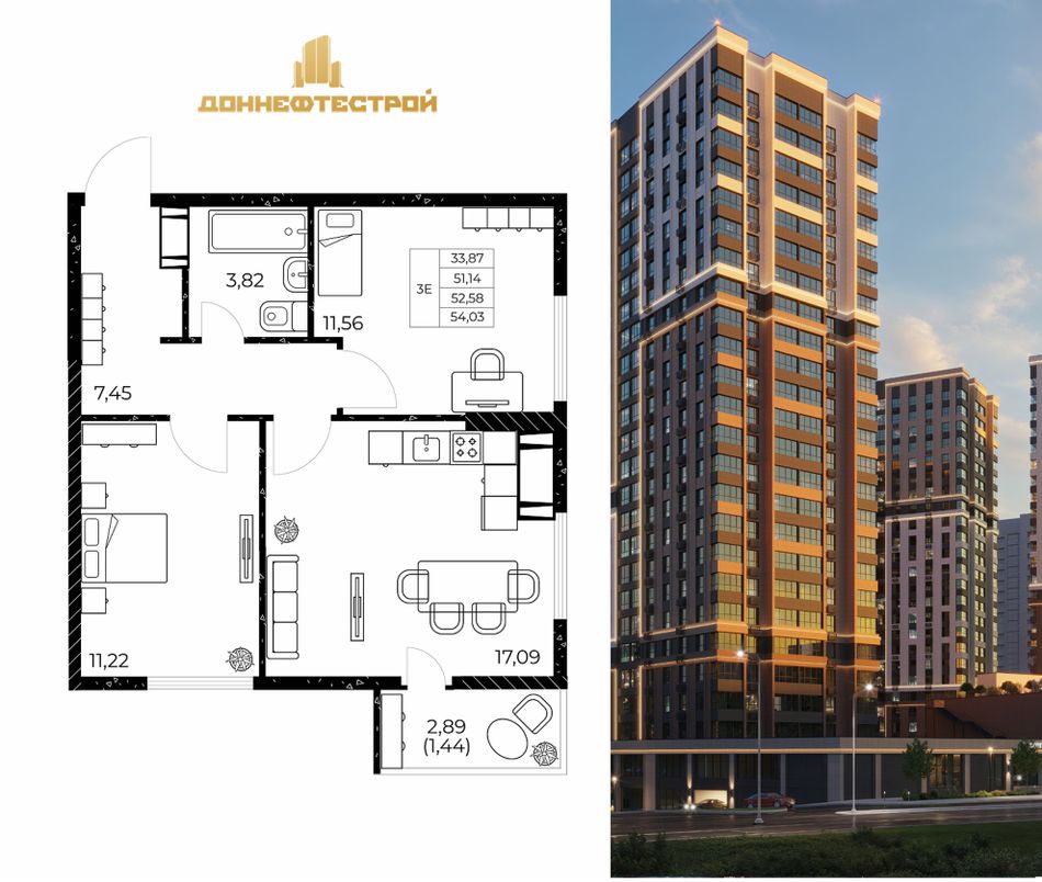 2-комнатная — 54,03 м² 7/25 эт. в Звезда Столицы 2