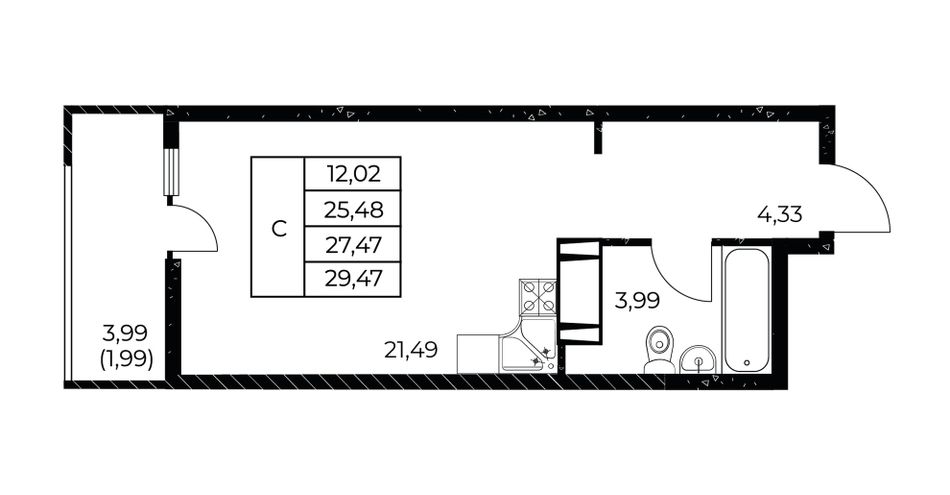 Общая площадь29,47 м²