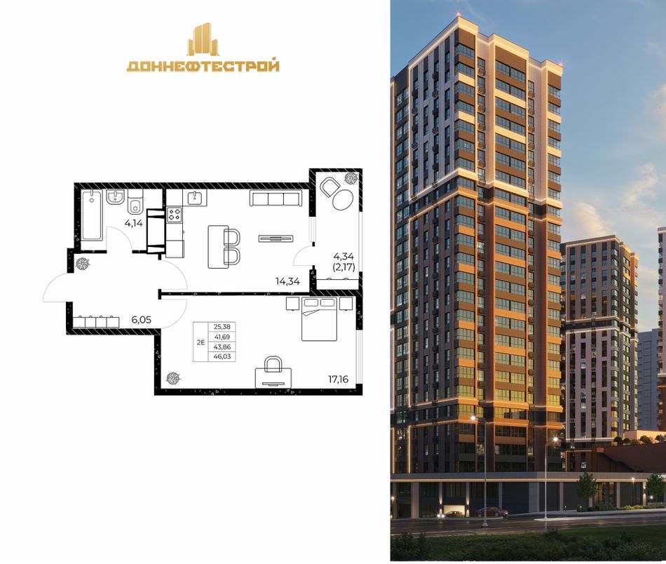 1-комнатная — 46,03 м² 9/25 эт. в Звезда Столицы 2