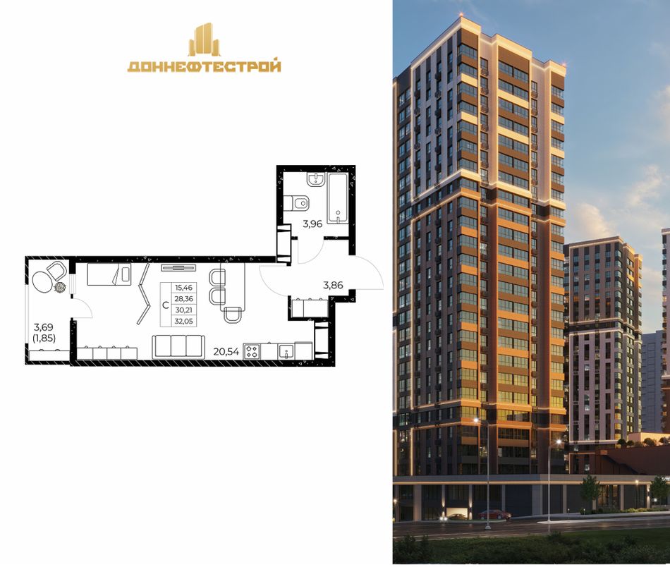 | Студия | 28 м² | 4,9 - 6,4 млн ₽ |