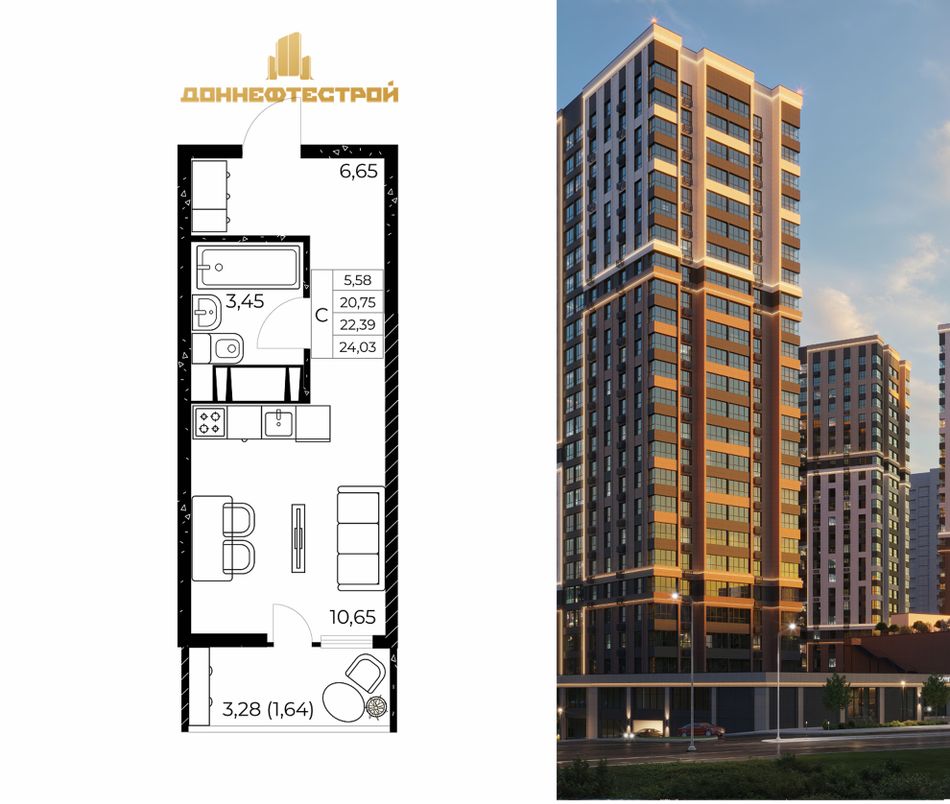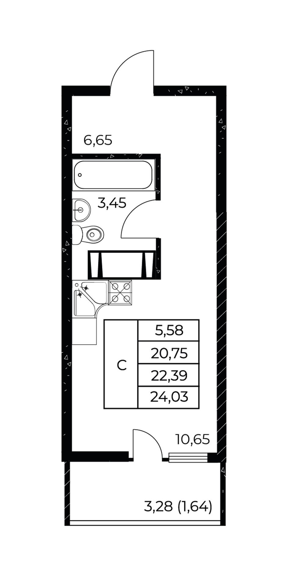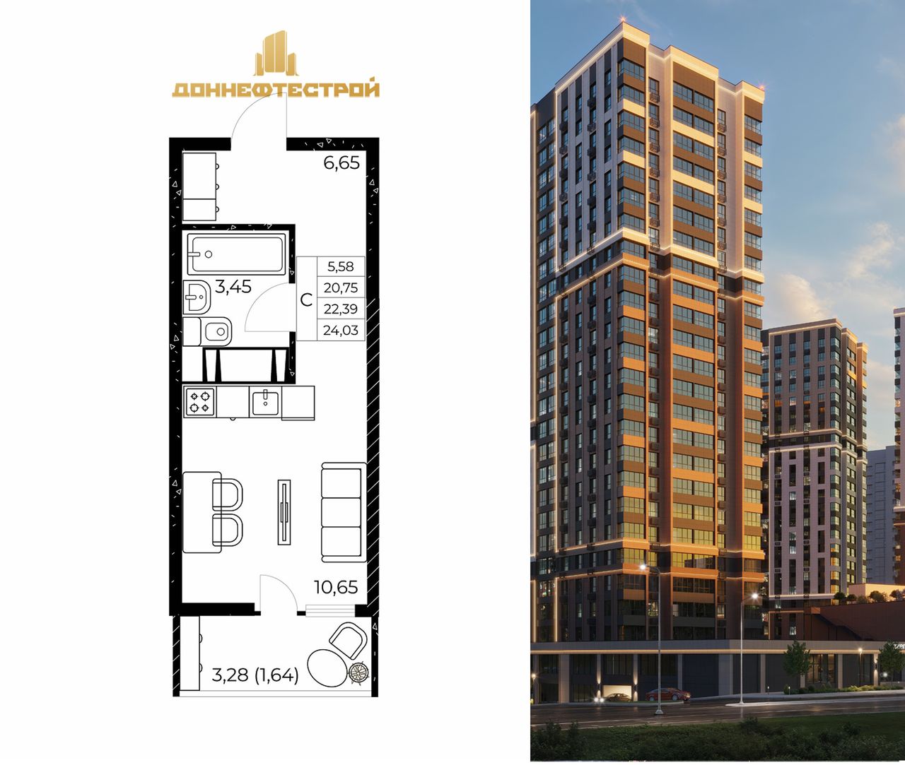 | Студия | 23 - 24 м² | 3,1 - 4,6 млн ₽ |