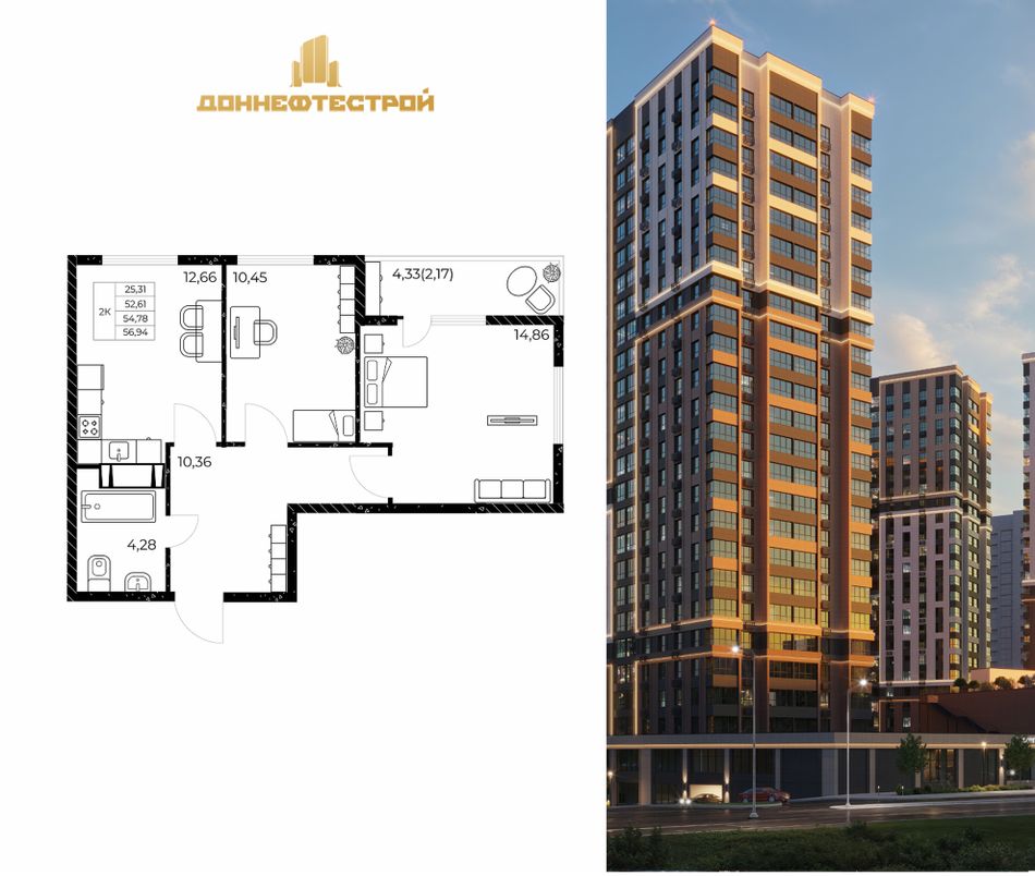 2-комнатная — 56,94 м² 19/25 эт. в Звезда Столицы 2