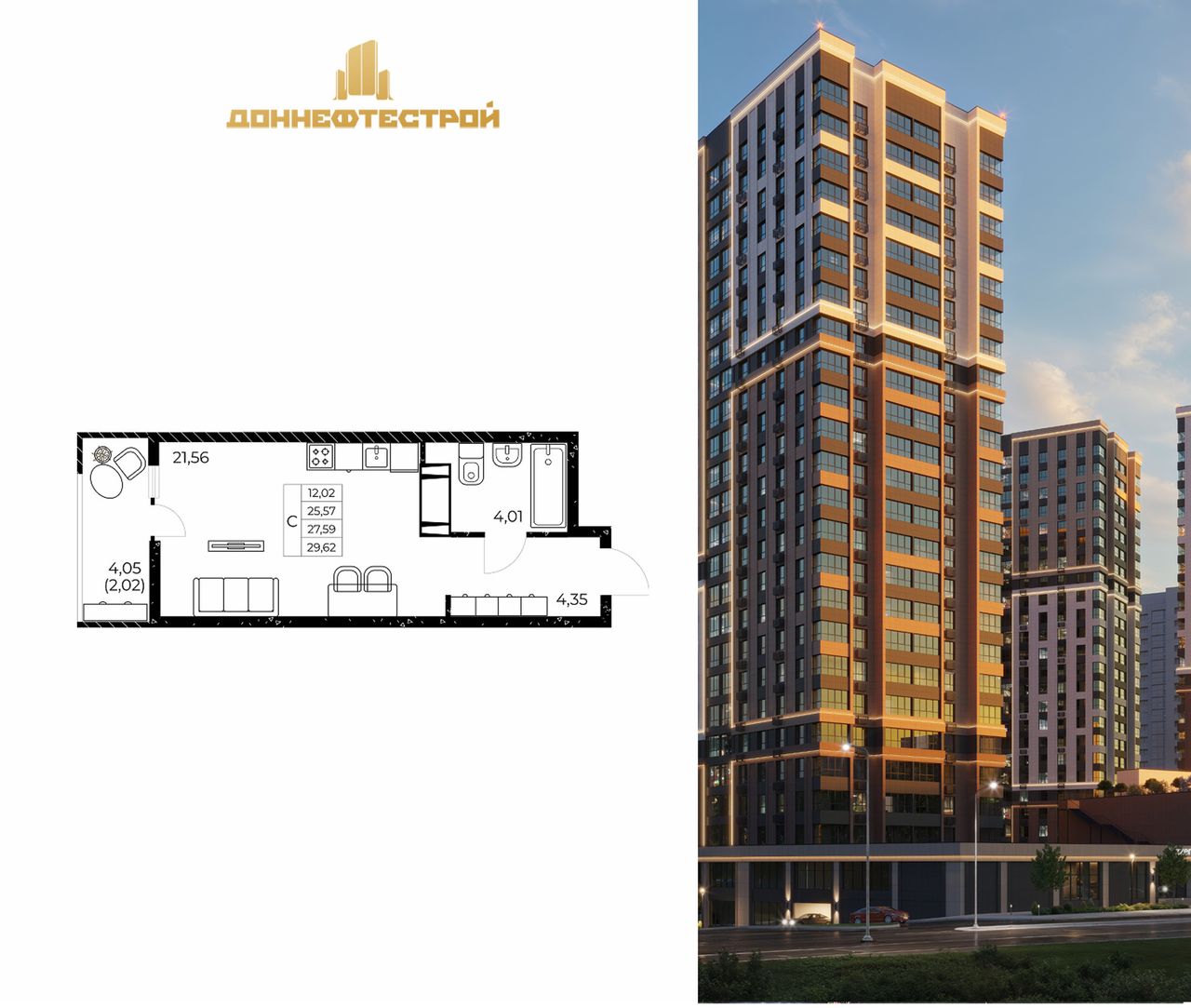 | Студия | 28 м² | 4,9 - 6,4 млн ₽ |