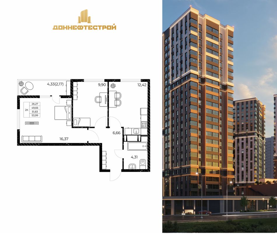 2-комнатная — 53,99 м² 23/25 эт. в Звезда Столицы 2