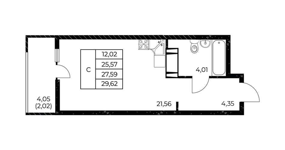 | Студия | 23 - 24 м² | 3,8 - 4,6 млн ₽ |