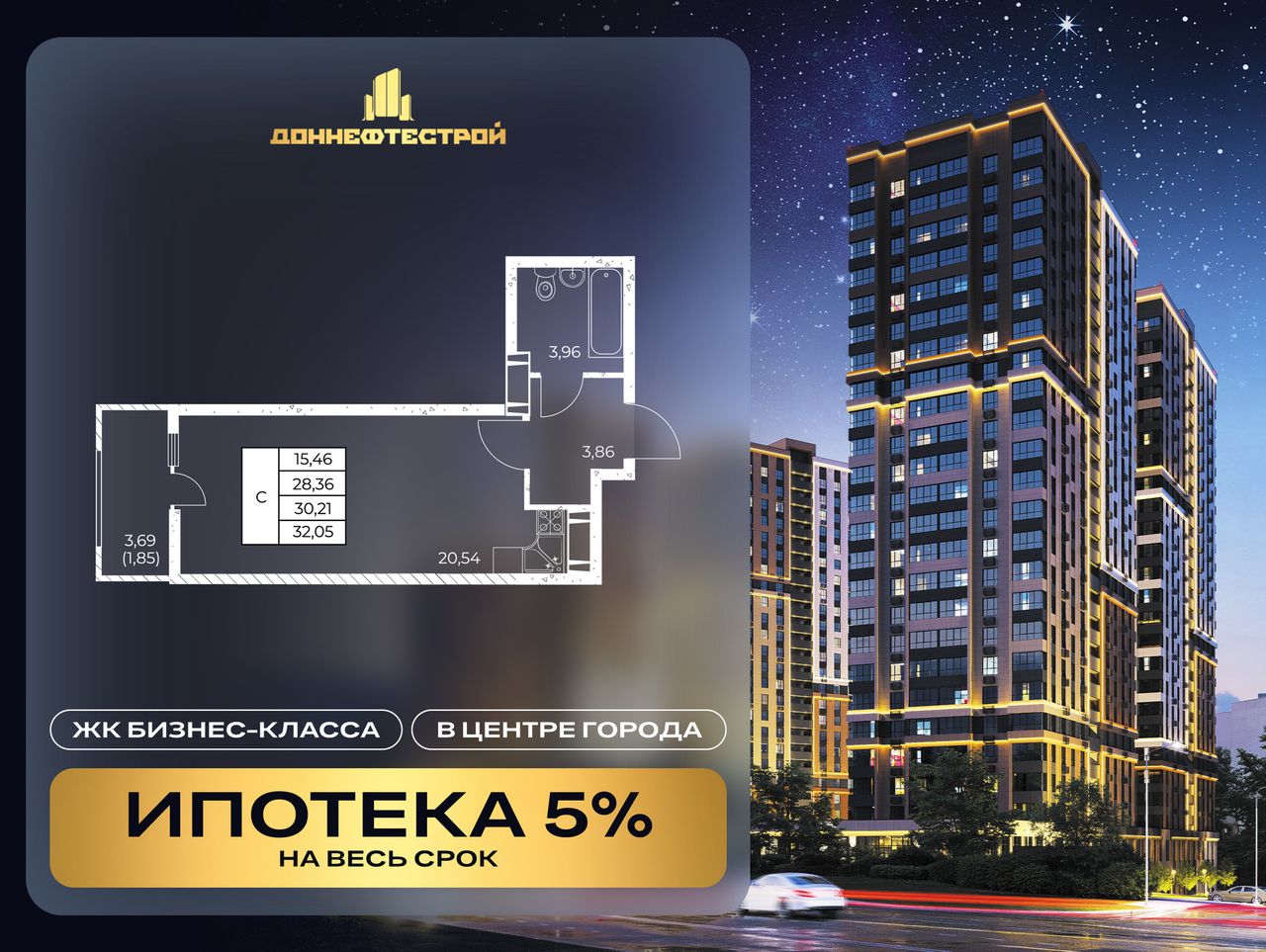 | Студия | 28 м² | 4,6 - 6,4 млн ₽ |