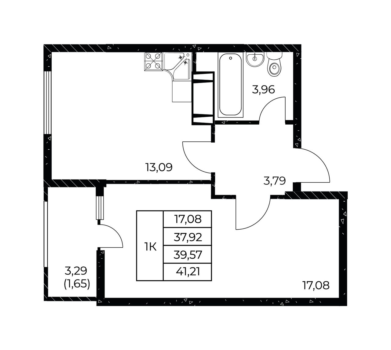 Общая площадь41,21 м²