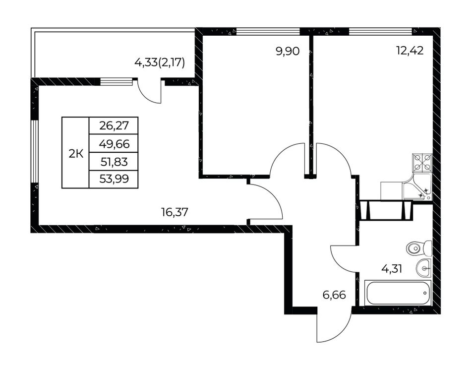 Общая площадь53,99 м²