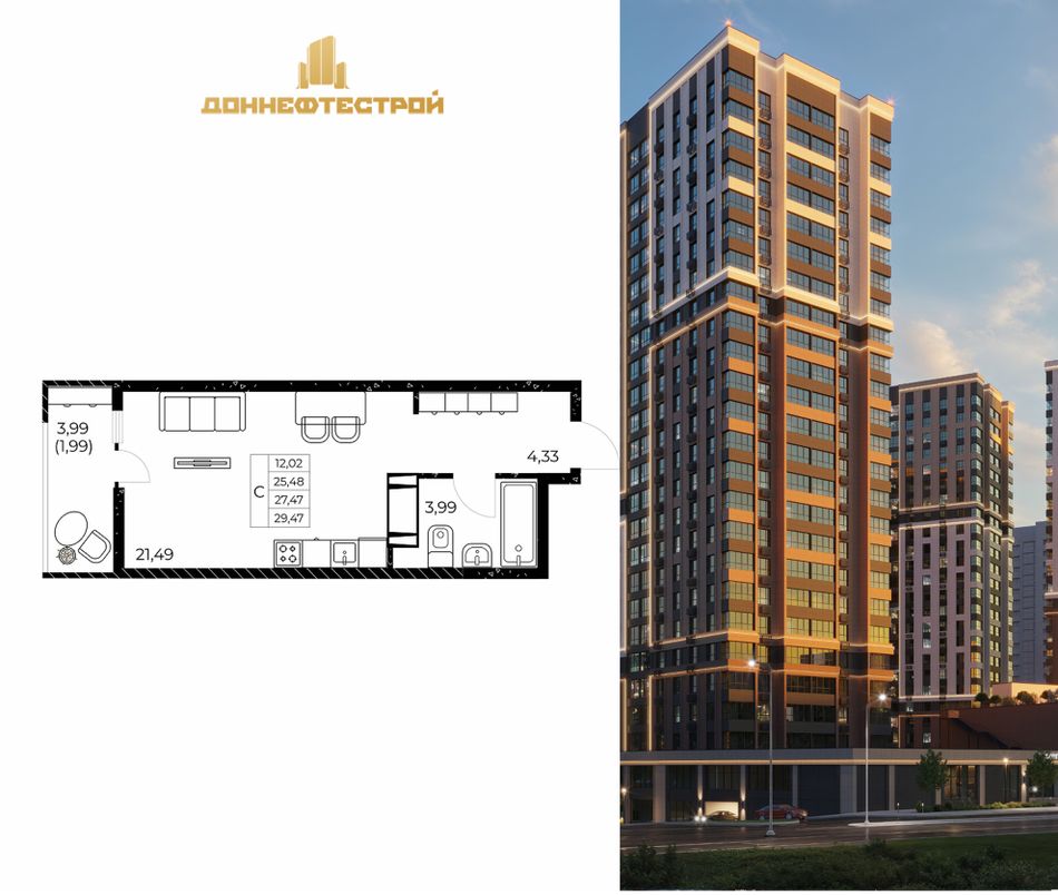 | Студия | 28 м² | 4,9 - 6,4 млн ₽ |