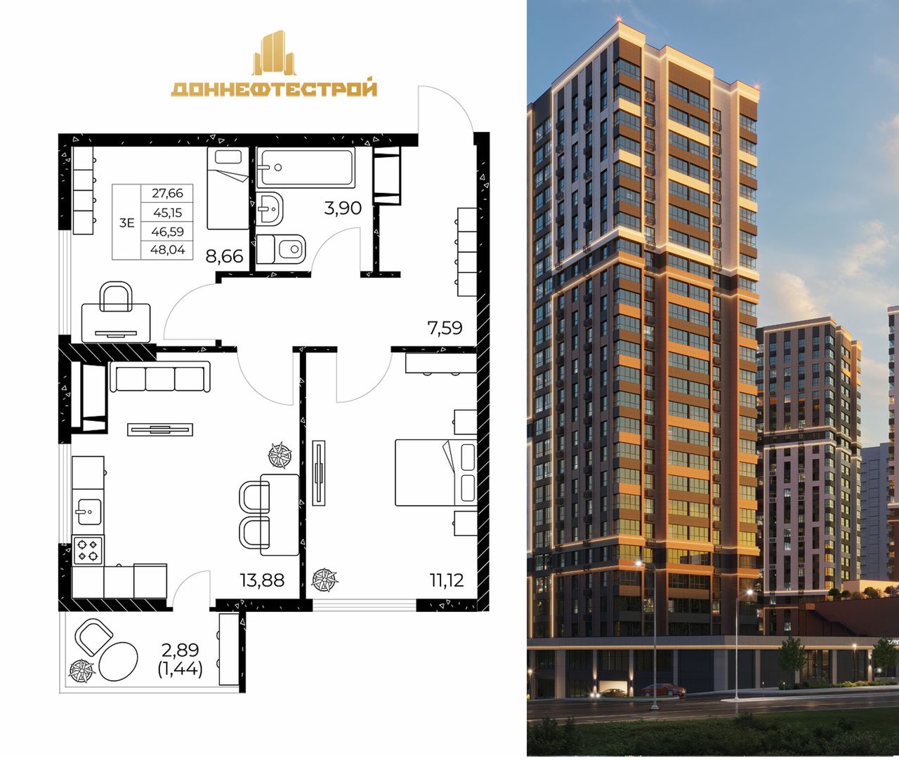 2-комнатная — 48,04 м² 18/25 эт. в Звезда Столицы 2