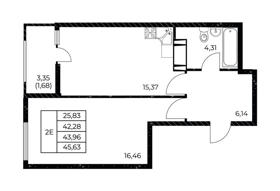 Общая площадь45,63 м²