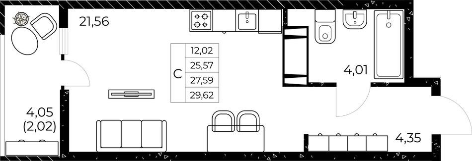 Общая площадь29,62 м²