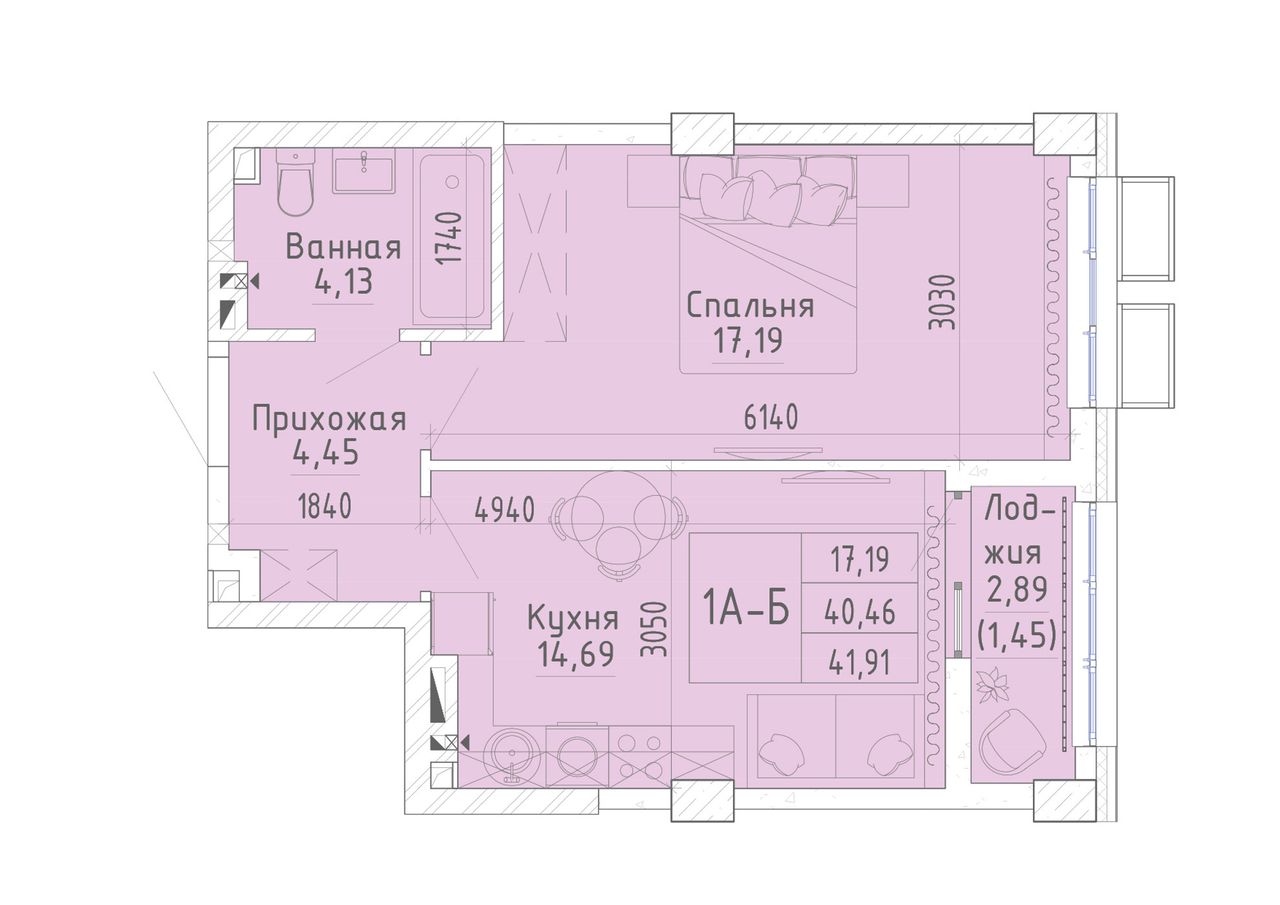 Общая площадь41,6 м²