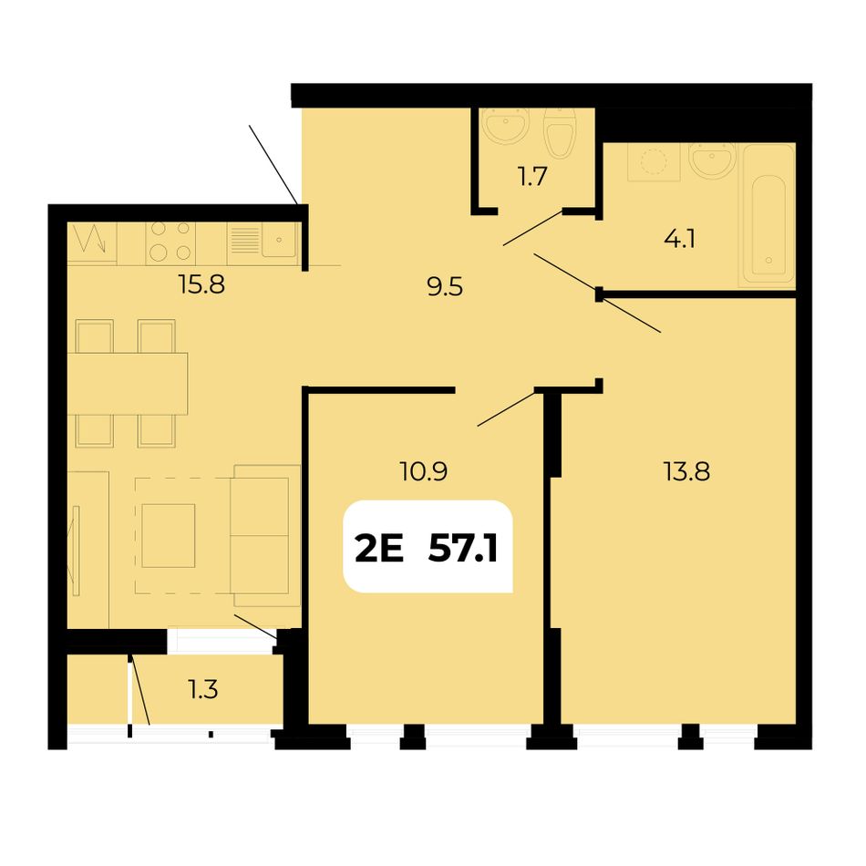 Общая площадь57,1 м²