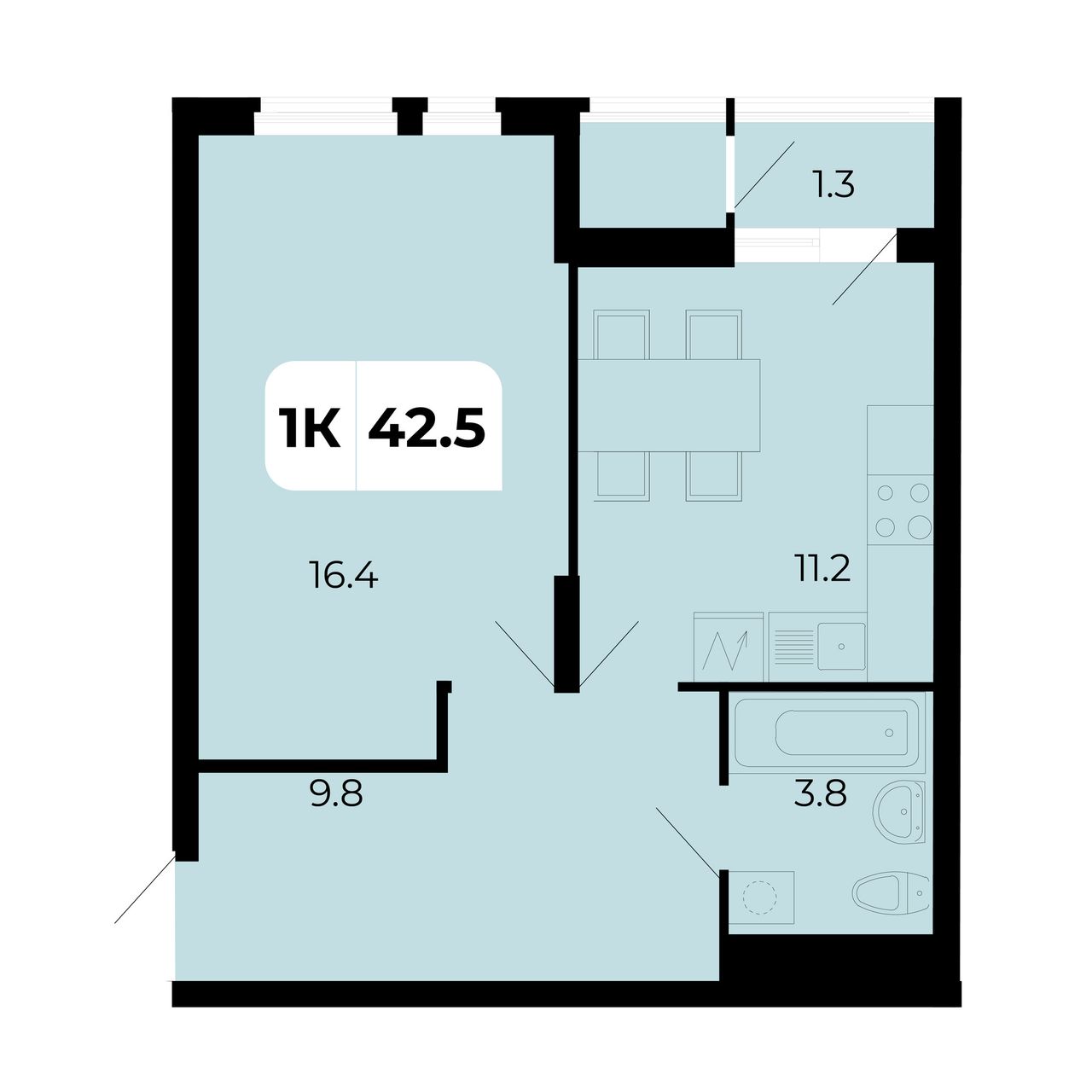 Общая площадь42,5 м²